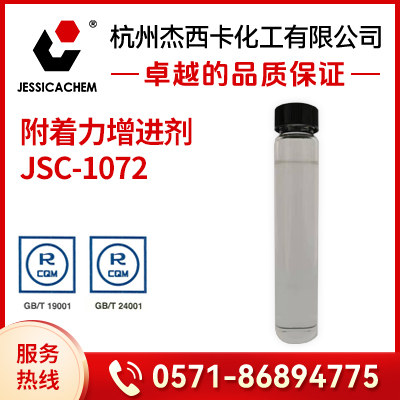 JSC-1072属于小分子有机硅化合物, 是一种较好的附着力促进,增强剂.对硅酸盐的、金属、玻璃,水泥,陶瓷和填料等体系有明显效果,可显著改善产品的特性,增强界面间的附着力。具有较好的储存稳定性,长期储存不会出现胶化的现象 。